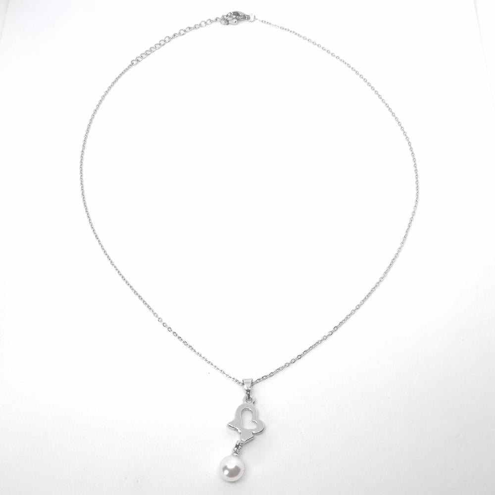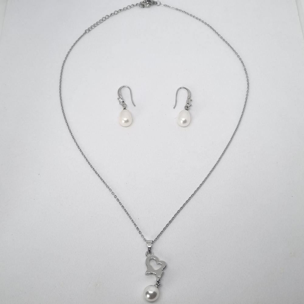 طقم نسائي أنيق من اللؤلؤ الطبيعي بلون فضي